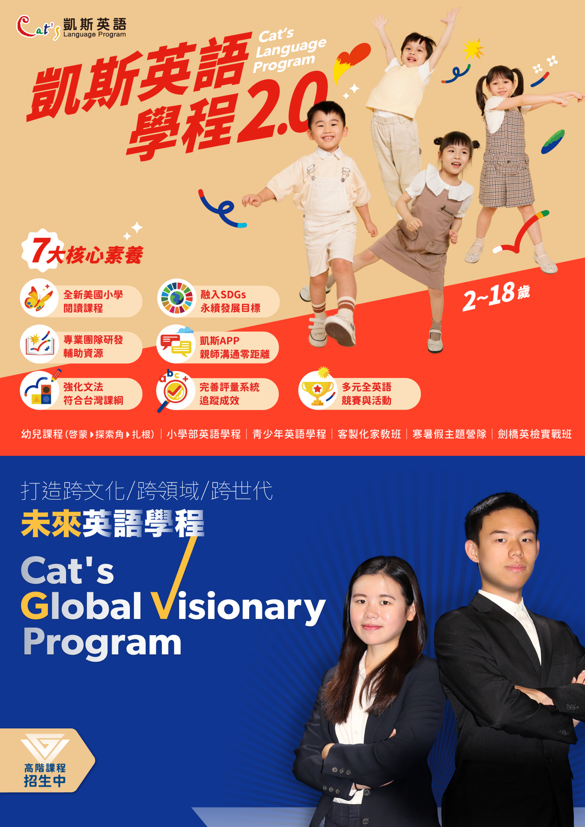 凱斯英語學程2.0全面升級! 一起踏上這場英語學習的精彩旅程,享受語言帶來的樂趣,全方位提升聽、說、讀、寫能力,讓英語豐富你的每一天!●小學部英語學程●青少年英語學程●幼兒英語啓蒙/扎根